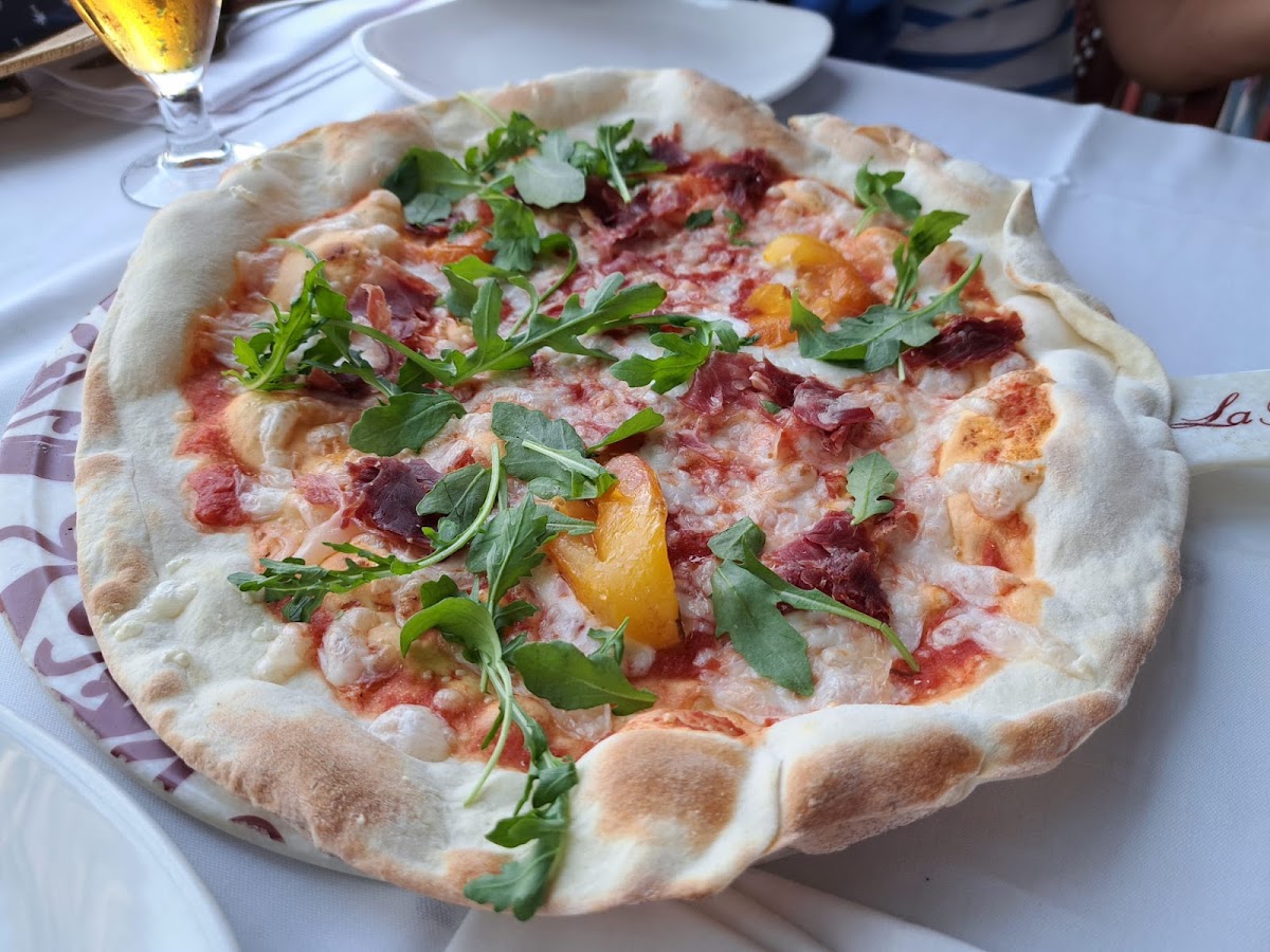 We had lunch here today and it was a lovely experience. The terrace looks out to the small boat harbour which is very pleasant. The service was quick and friendly, the food was amazing. We tried the ribs pizza on the special menu, and the calzone tradicional - possibly the best calzone I've ever had. Our friends had pizza and a stuffed pasta and they were very happy too. We'll definitely go back when we're in the Piedra area.