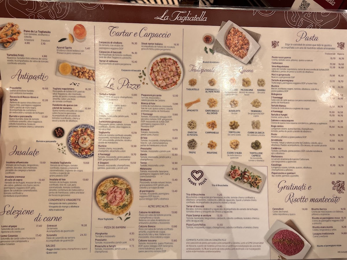 Introducing the Menu: La Tagliatella CC. A Laxe, Vigo